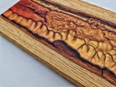 Platou realizat manual din lemn masiv de stejar si rasina epoxidica transparenta.