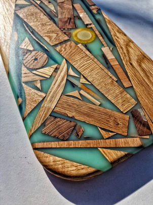Platou realizat manual dintr-un mix de esente (fag, nuc, stejar, salcam, tei) si rasina epoxidica.
