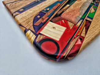 Platou realizat manual dintr-un mix de esente (stejar, fag, tei, molid) inchegate in rasina epoxidica.