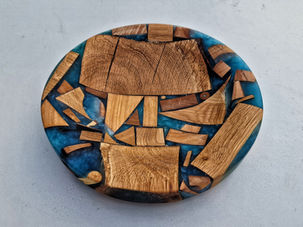 Platou/Bol realizat manual dintr-un mix de esente de lemn masiv (stejar, fag si tei) si rasina epoxidica.