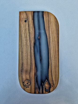 Platou/Tocator realizat manual din lemn masiv de salcam cu mici insertii de rasina epoxidica. Este realizat dintr-o singura bucata de lemn, păstrând astfel unicitatea si caracterul integral al lemnului.