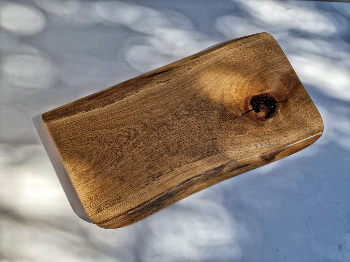 Tocator realizat manual din lemn masiv de stejar. Este realizat dintr-o singura bucata de lemn, păstrând astfel unicitatea si caracterul integral al lemnului.