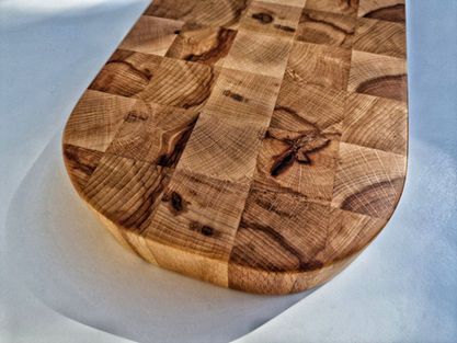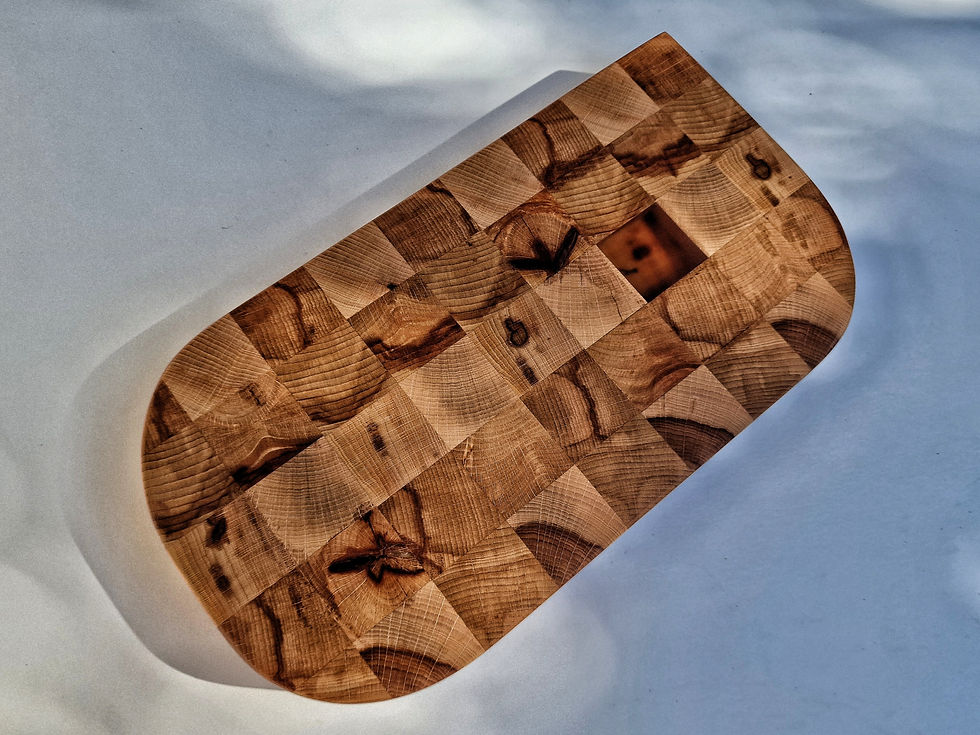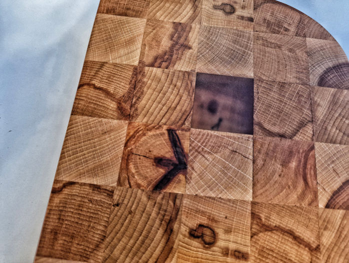 Platou/Tocator endgrain realizat manual din lemn masiv de fag cu mici insertii de rasina epoxidica.
