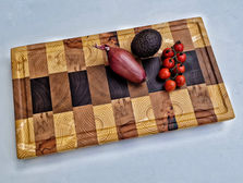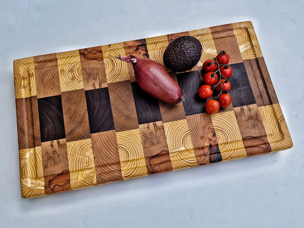 Platou/Tocator endgrain realizat manual din lemn masiv de fag, molid, stejar si nuc.